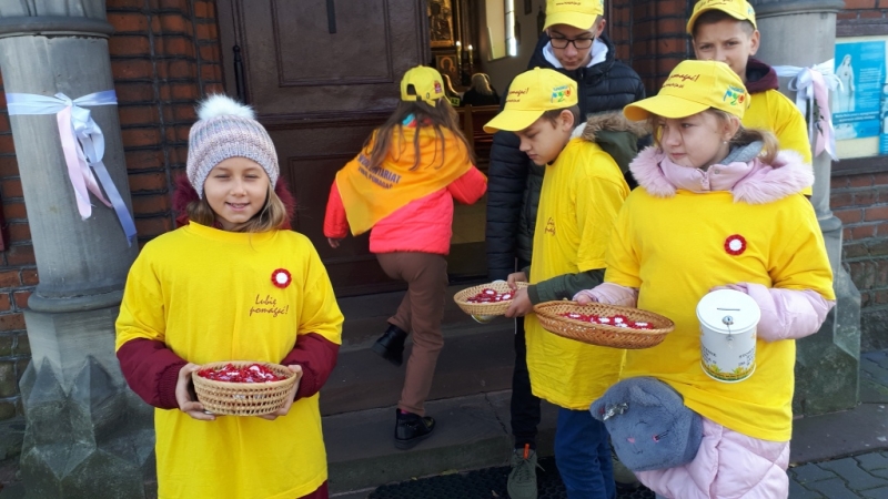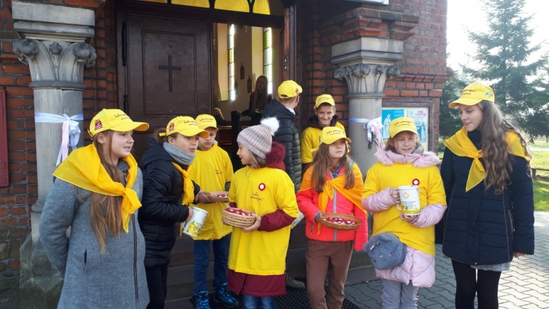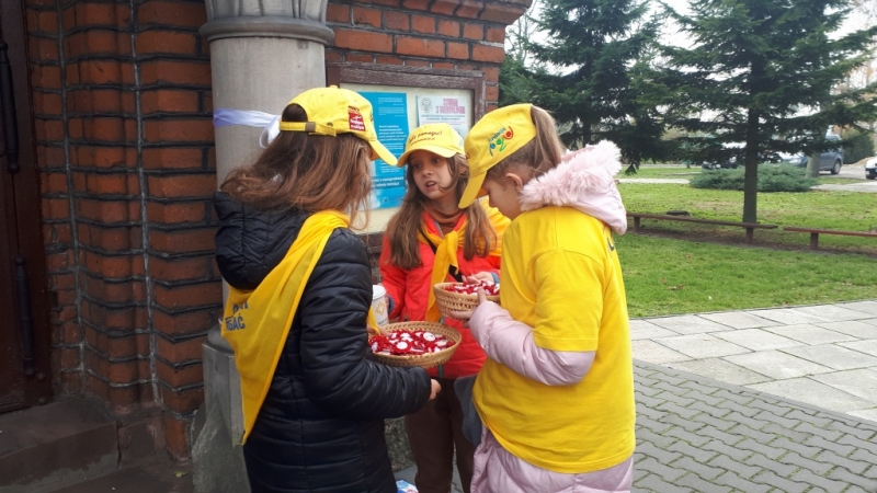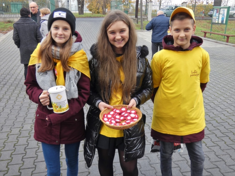 Szkolne Koło Wolontariatu “Pszczółki” działające przy Szkole Podstawowej w Leśmierzu po raz kolejny ( czwarty ) przeprowadziło akcję charytatywną ” Kokarda Narodowa “ z okazji 11 listopada Święta Niepodległości Polski. W dniach 6-7 XI w naszej szkole i 10-11 XI 2019 r. przy Kościele Parafii p.w. św. Józefa w Leśmierzu. W akcji brało udział 15 Wolontariuszy. Uzbieraliśmy kwotę 774,50 zł.. Zebrane środki przeznaczone są na dalszą budowę Hospicjum Stacjonarnego im. Jana Pawła II w Zgierzu.
