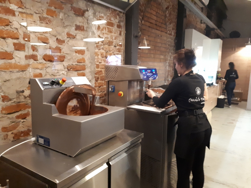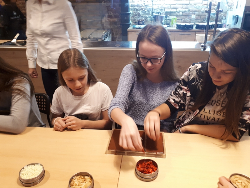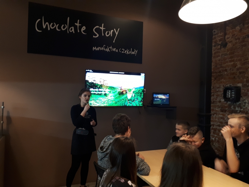 W dniu 15 grudnia klasy II gimnazjum i VII wraz z opiekunkami p. Sabiną Pabiańczyk, p. Katarzyną Ogonowską i p. Katarzyną Modlińską wyjechały do Łodzi do Manufaktury Czekolady Chocolate Story. Był to mikołajkowo-świąteczny wyjazd. Manufaktura Czekolady to jedyny w Polsce zakład, w którym czekolada jest produkowana ręcznie bezpośrednio z ziarna kakaowca. Cały proces produkcji ma miejsce pod jednym dachem. I właśnie my mieliśmy okazję to zobaczyć i przeżyć. Na początku zajęć odbyła się na ekranie prezentacja całego procesu powstawania czekolady – od plantacji do tabliczki. Następnie uczniowie sami tworzyli i pakowali własną tabliczkę czekolady, którą oczywiście otrzymali w prezencie do domu. Miłą niespodzianką okazał się kubek gorącej czekolady, który czekał na każdego uczestnika. W międzyczasie odbyła się degustacja ziarna kakao. Na koniec zobaczyliśmy pokaz ręcznego temperowania czekolady na blacie granitowym. Pobyt w manufakturze minął nam nie tylko bardzo słodko, ale również bardzo przyjemnie, podczas którego uśmiech nie schodził nam z twarzy.